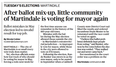 Mistakes with the ballot during the May election allowed those outside the city — in Martindale’s extraterritorial jurisdiction — to improperly vote for mayor, while those in the city were allowed to vote on ETJ issues.